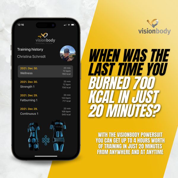 VisionBody Whole Body EMS training offers an effective solution for sustainable weight loss and fat burning. Simply eating healthily isn't sufficient—you need consistent, targeted training to tackle stubborn fat areas. With VisionBody EMS training, you can focus on specific trouble spots such as your stomach, waist, hips, and thighs. This enables a continuous reduction in weight and body fat by building lean muscle mass.