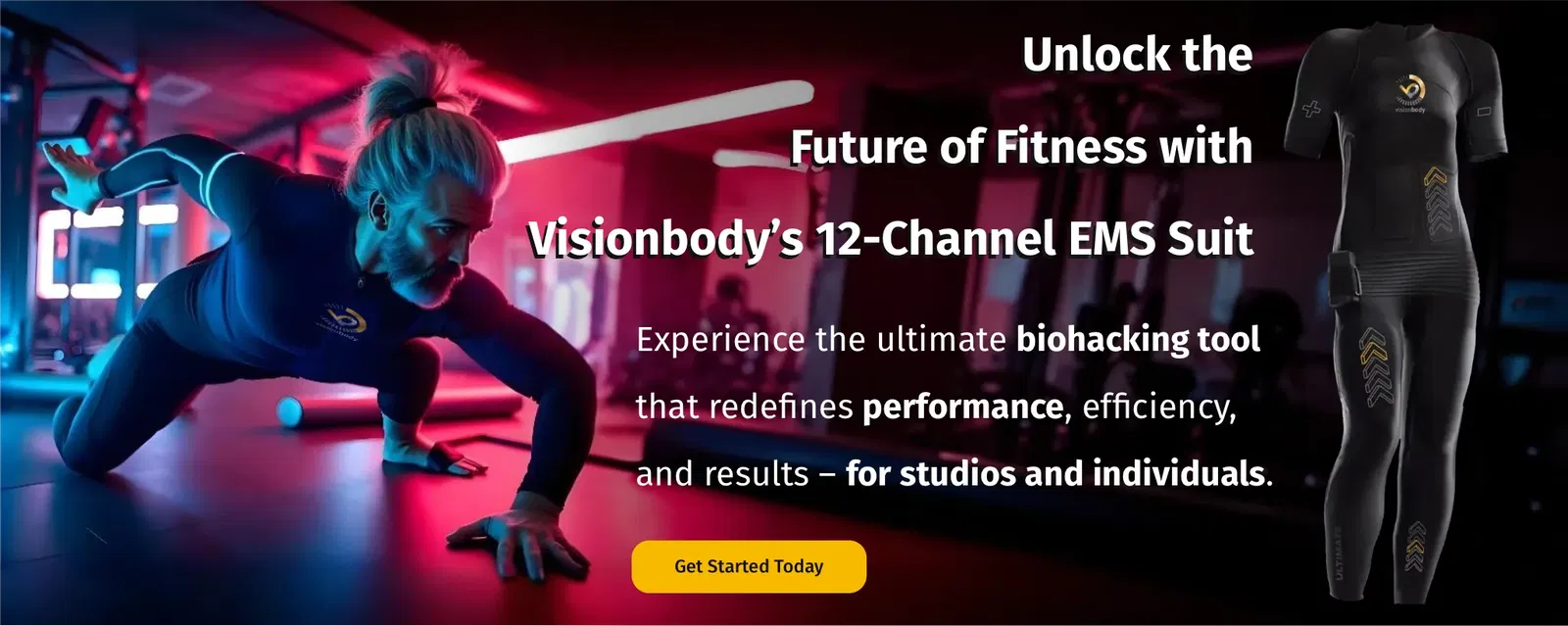 VisionBody EMS Body Workout training is remarkably efficient, requiring only 20 minutes per session, due to its unique stimulation of major muscle groups and development of motoric nerve connections crucial for muscle movement. By directly targeting these nerves with electric impulses, even weakly connected muscles are effectively activated.